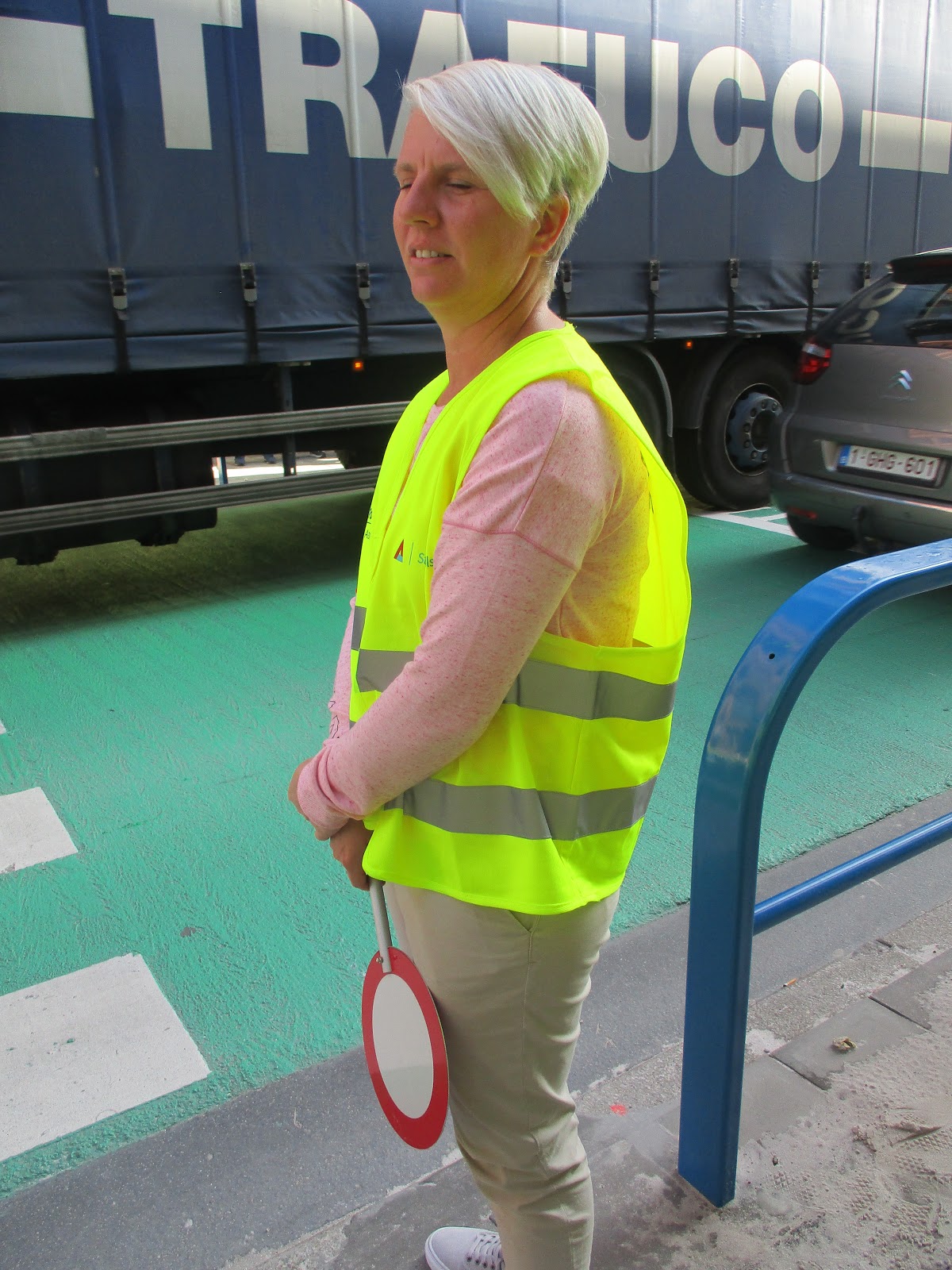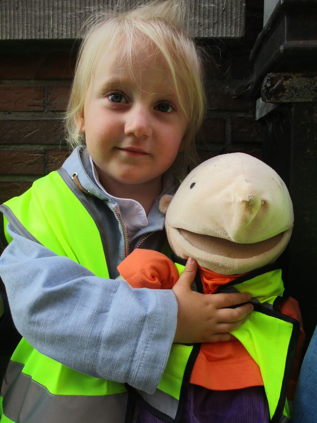 Alle kleuters kregen een fluo hesje zodat we dagelijks zichtbaar de straat kunnen opgaan.